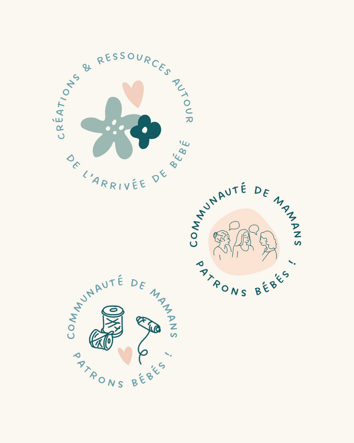 Le chiffre 3 a été repris dans le logo avec la présence des fleurs et du coeurs, symbole du trio 2 parents et 1 enfant. Chacun avec une couleur et une forme qui les rendent unique.
